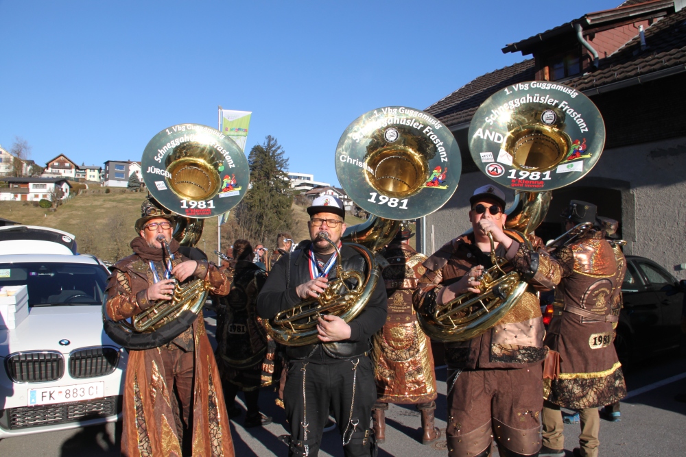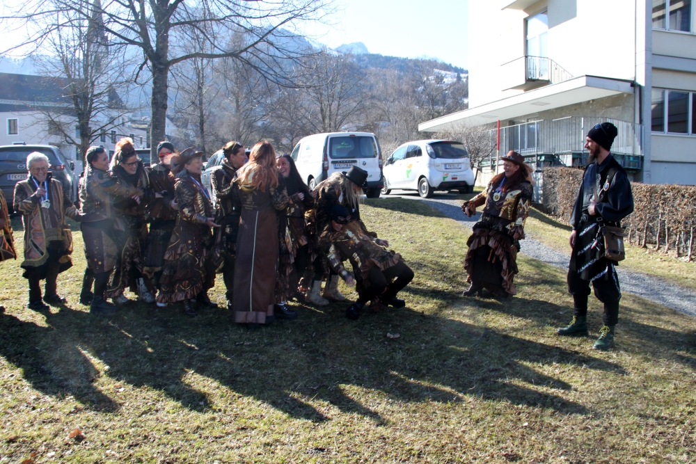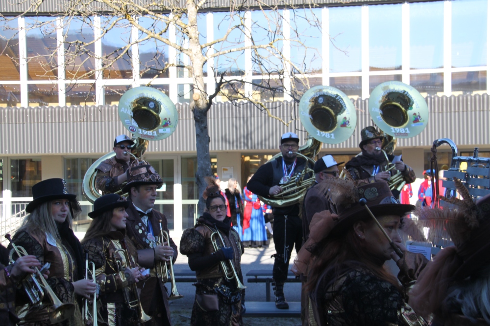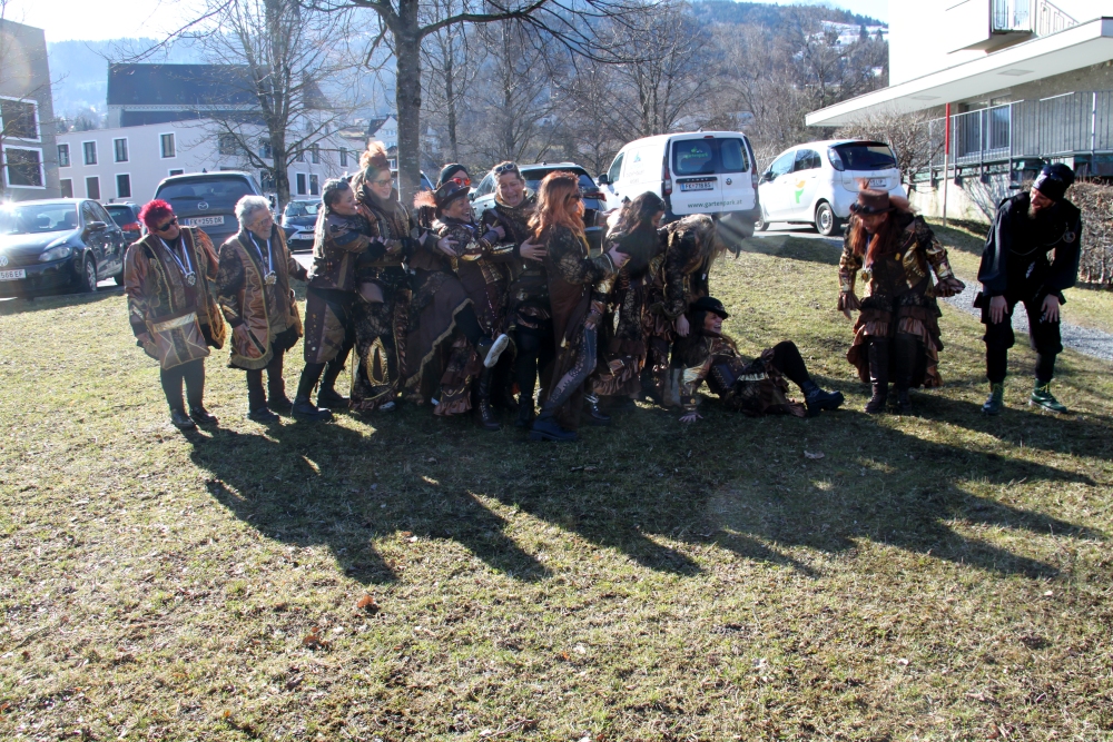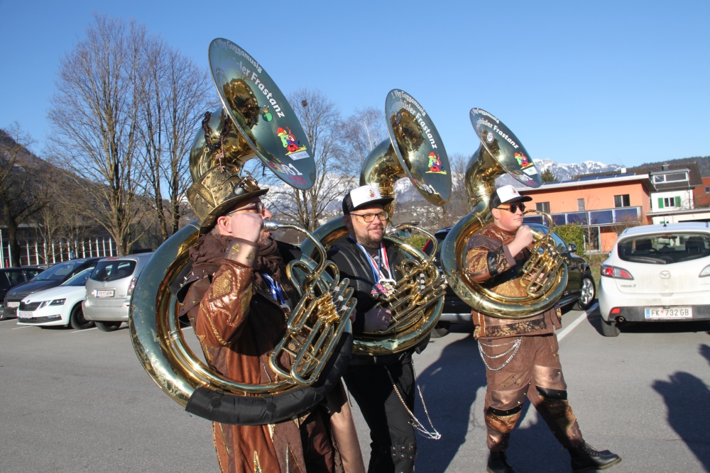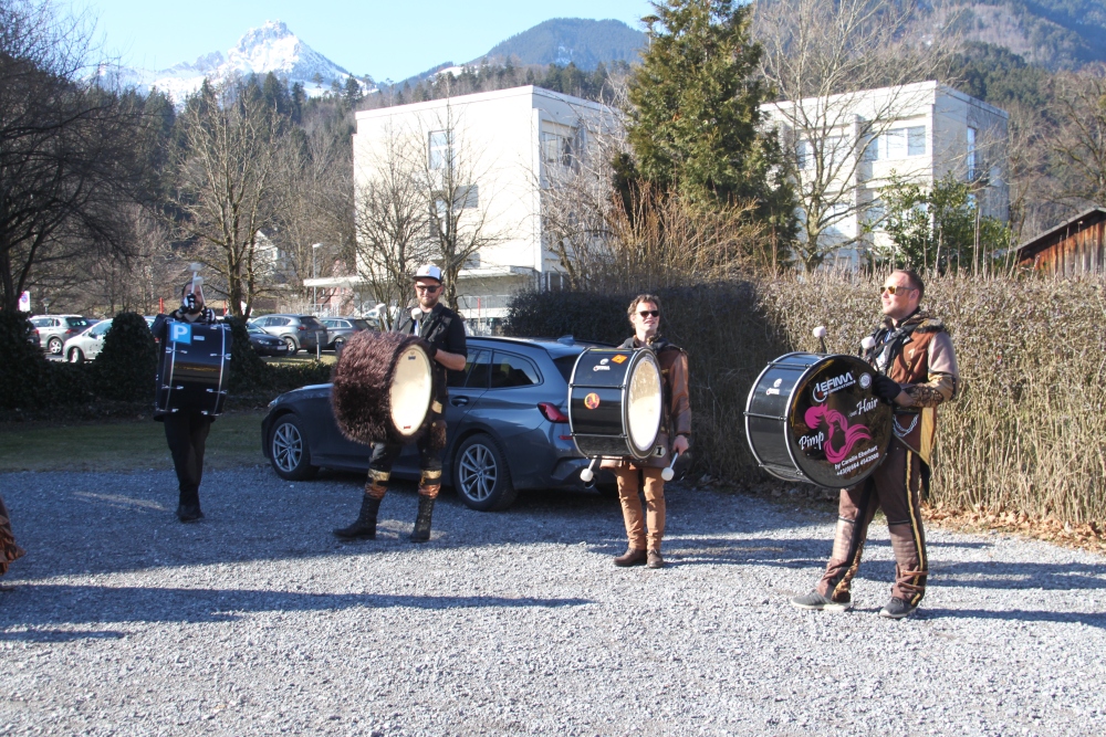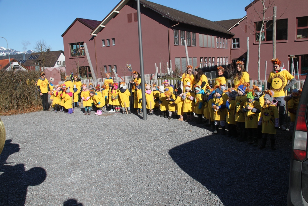 Rosenmontag amol chilliger 0700 schminka, Kindergarta Amerlüga, VS Fellengatter, Mittelschule Frastanz, Bildungszentrum Frastanz und Hotel Monfort waren hütt üsre Stationa. Danke dr Rieblar no für dia guate Jause und des tolle zemmaschaffa. Schnegg schnegg -Gugg gugg