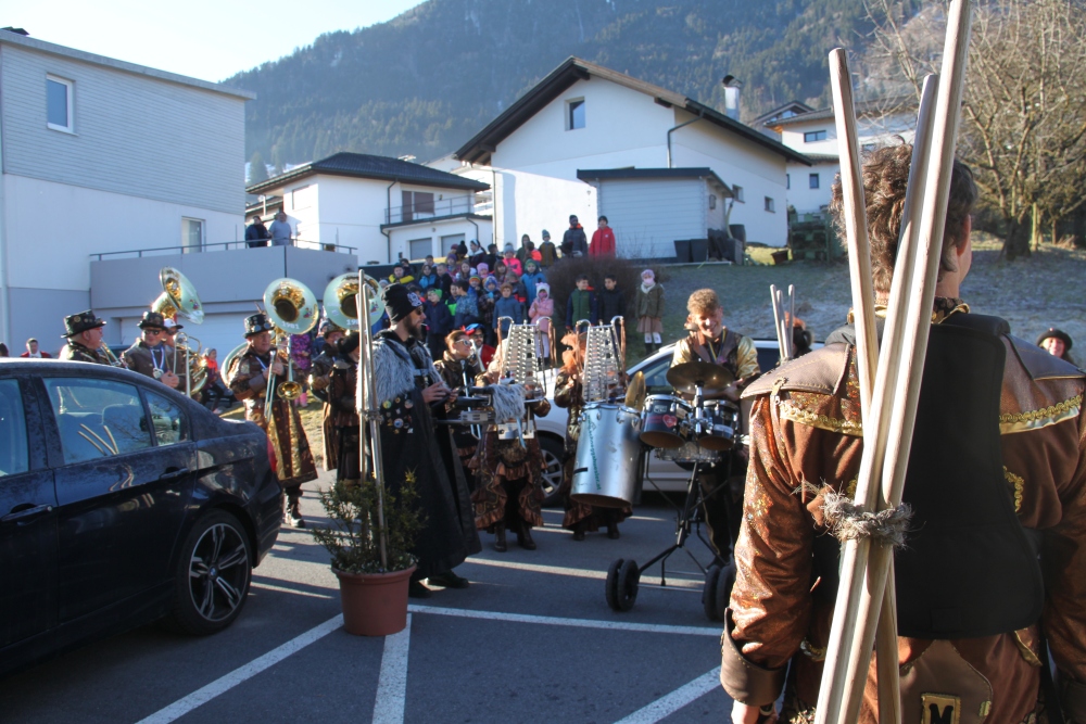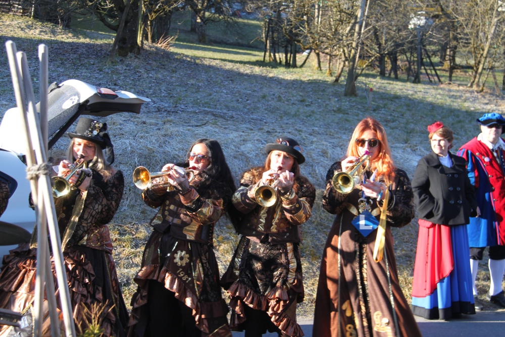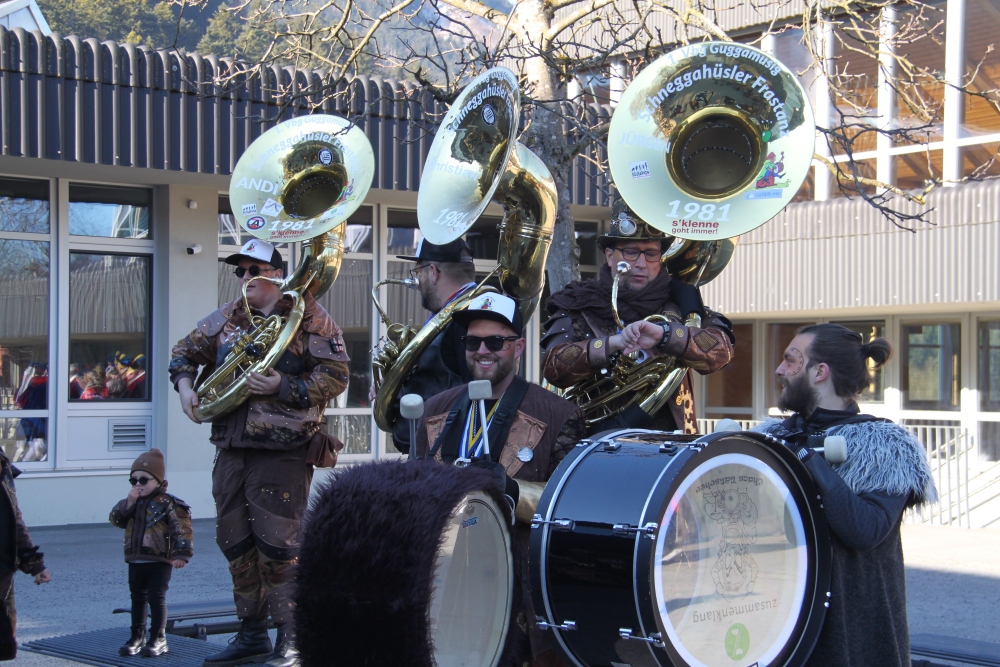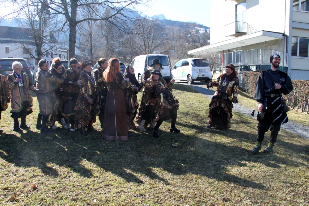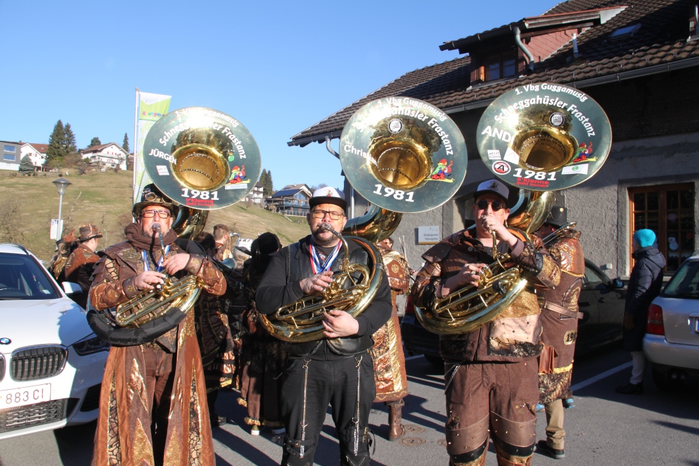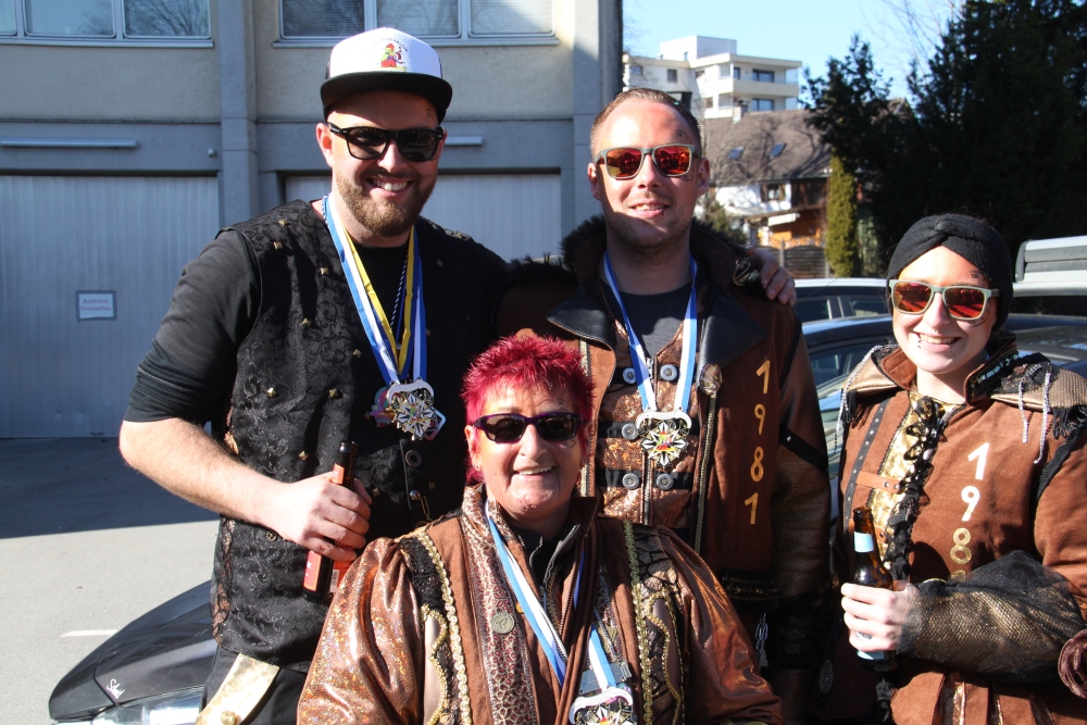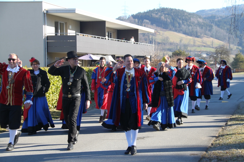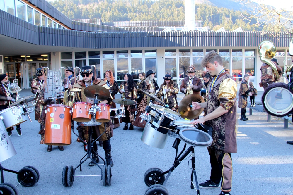 Rosenmontag amol chilliger 0700 schminka, Kindergarta Amerlüga, VS Fellengatter, Mittelschule Frastanz, Bildungszentrum Frastanz und Hotel Monfort waren hütt üsre Stationa. Danke dr Rieblar no für dia guate Jause und des tolle zemmaschaffa. Schnegg schnegg -Gugg gugg