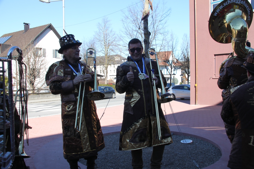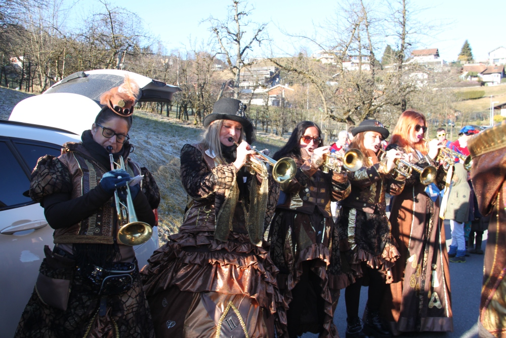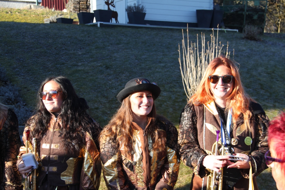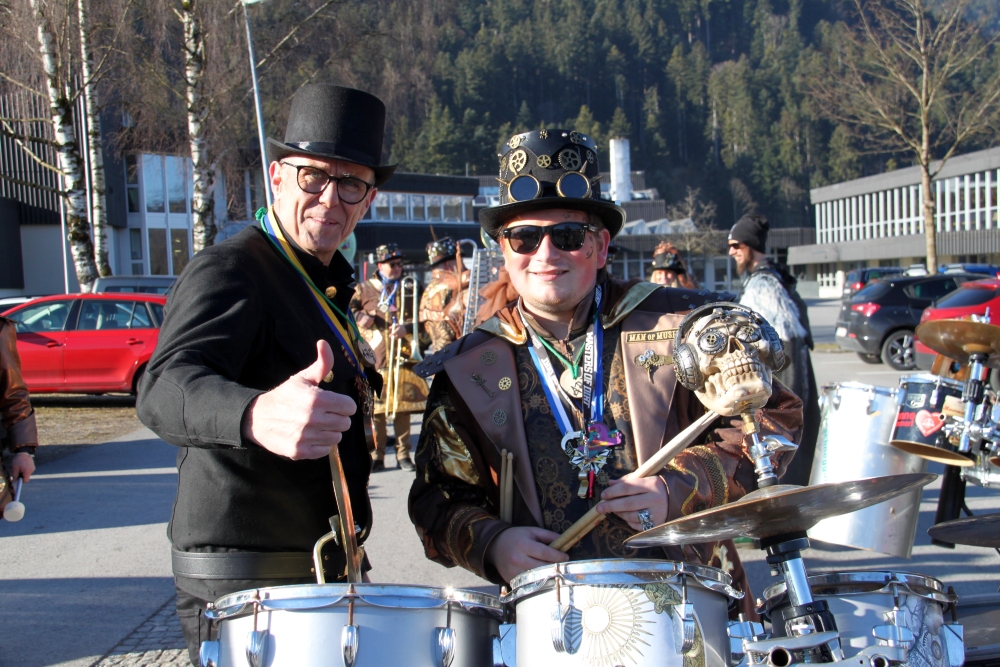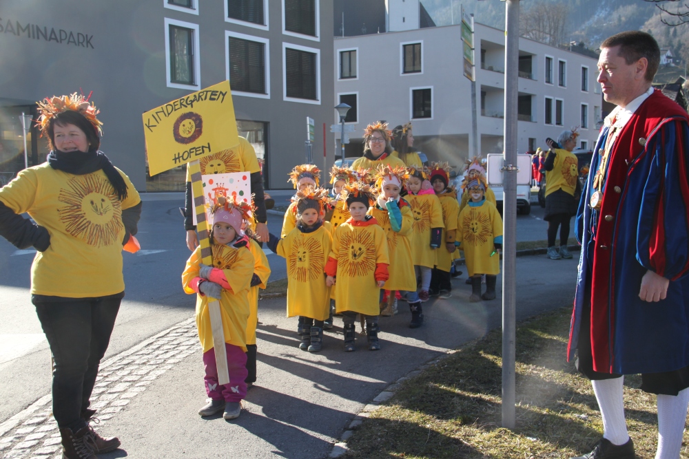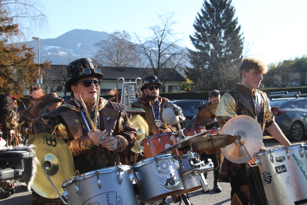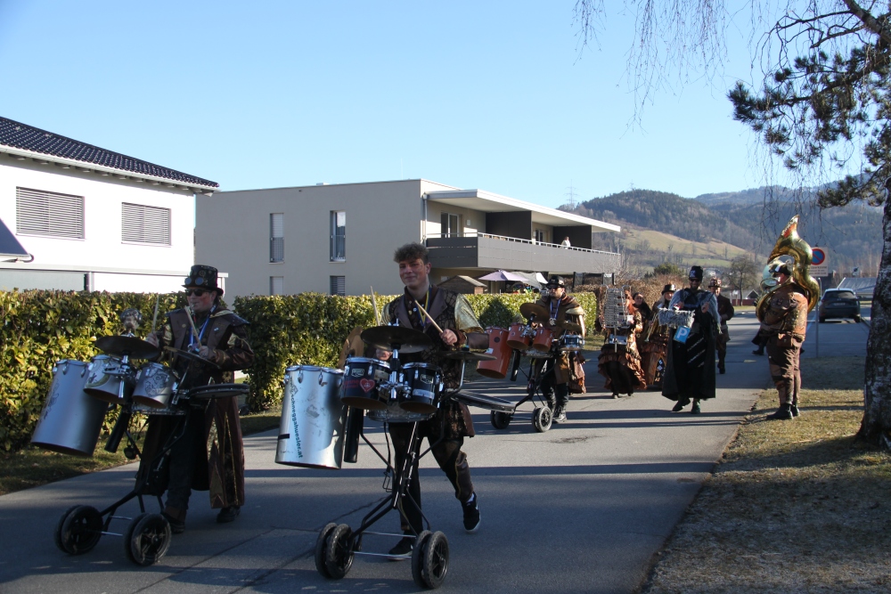 Rosenmontag amol chilliger 0700 schminka, Kindergarta Amerlüga, VS Fellengatter, Mittelschule Frastanz, Bildungszentrum Frastanz und Hotel Monfort waren hütt üsre Stationa. Danke dr Rieblar no für dia guate Jause und des tolle zemmaschaffa. Schnegg schnegg -Gugg gugg