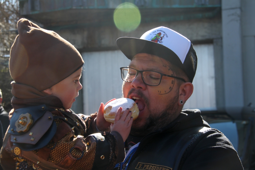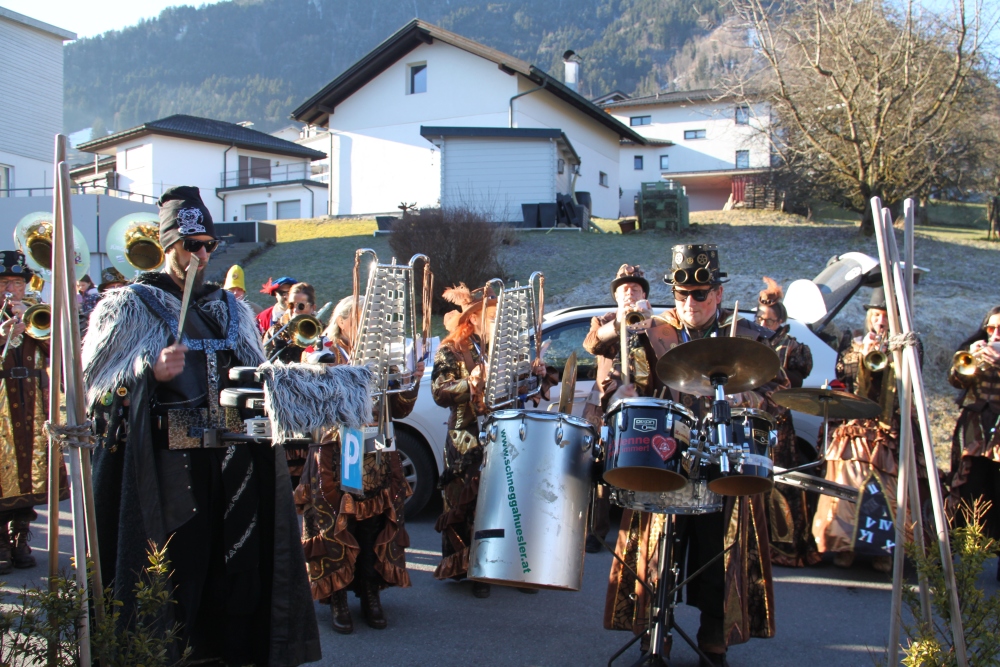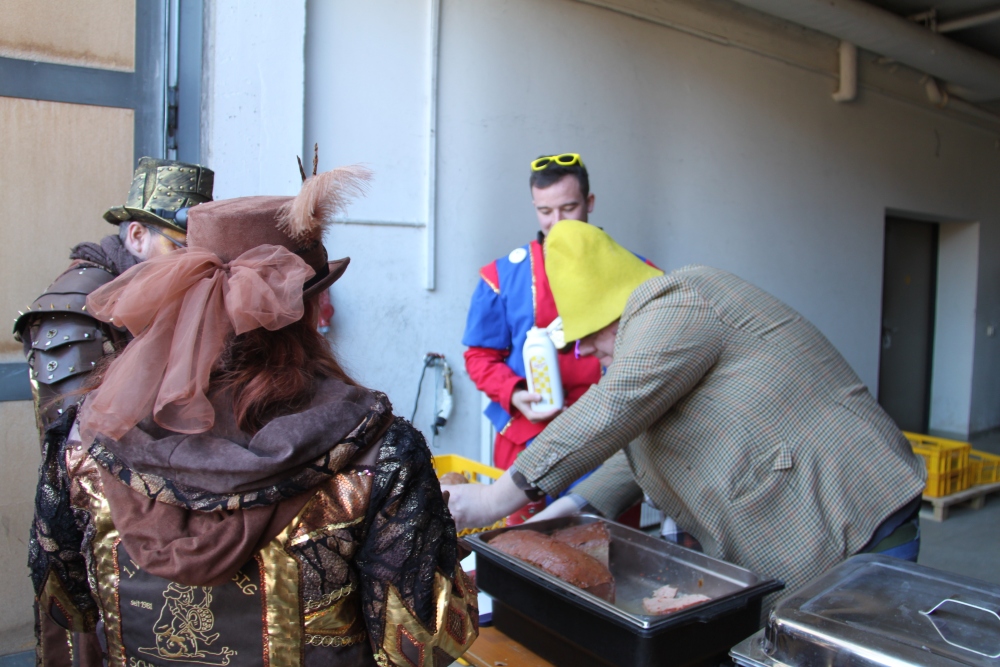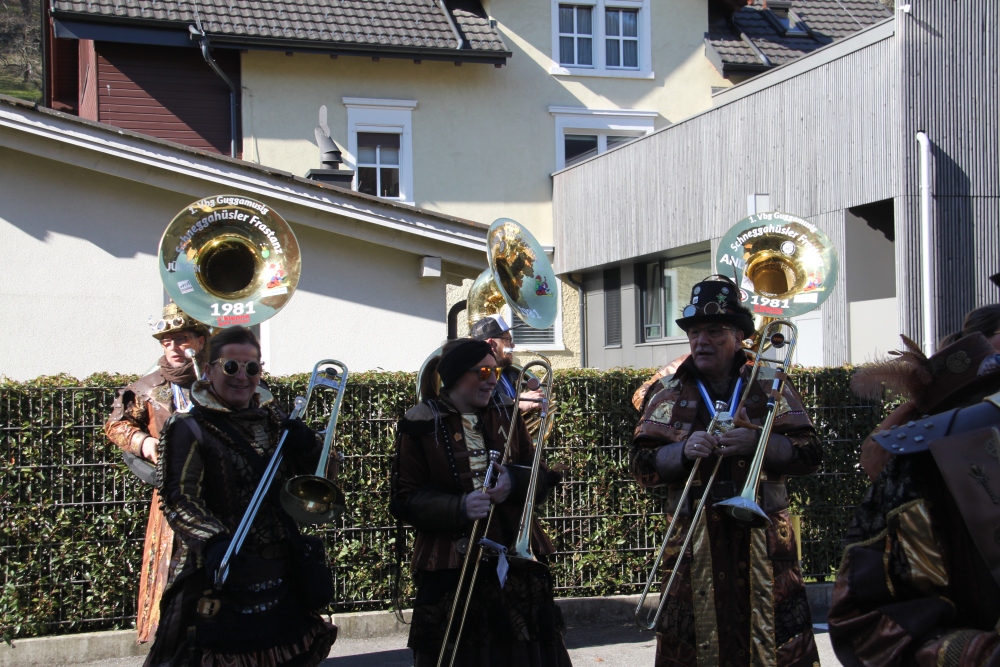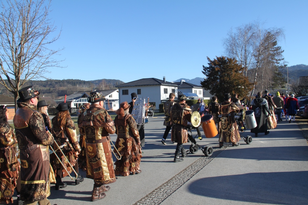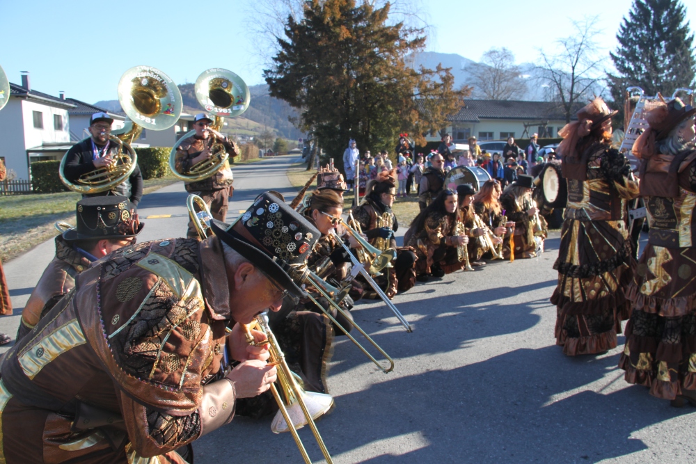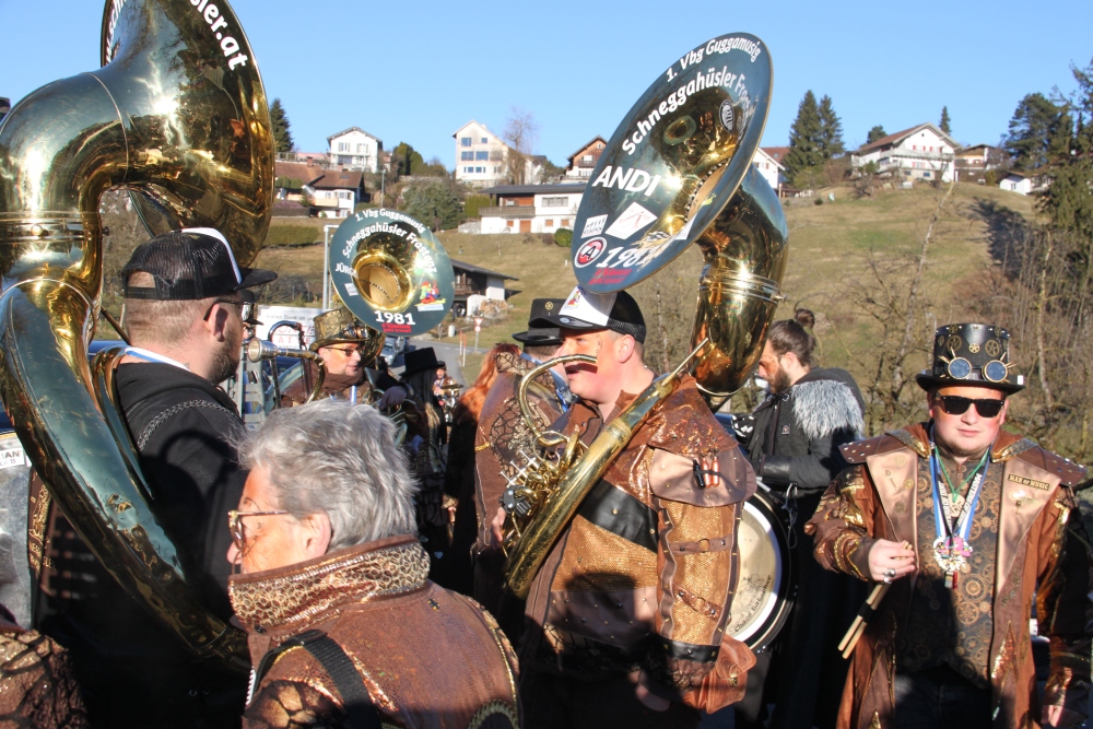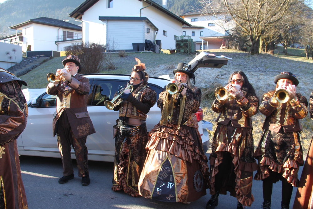 Rosenmontag amol chilliger 0700 schminka, Kindergarta Amerlüga, VS Fellengatter, Mittelschule Frastanz, Bildungszentrum Frastanz und Hotel Monfort waren hütt üsre Stationa. Danke dr Rieblar no für dia guate Jause und des tolle zemmaschaffa. Schnegg schnegg -Gugg gugg