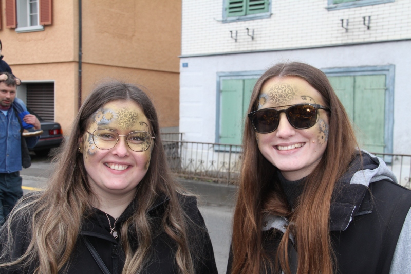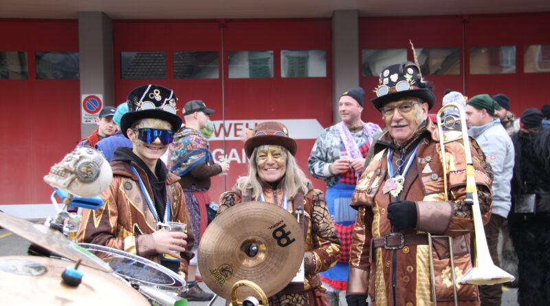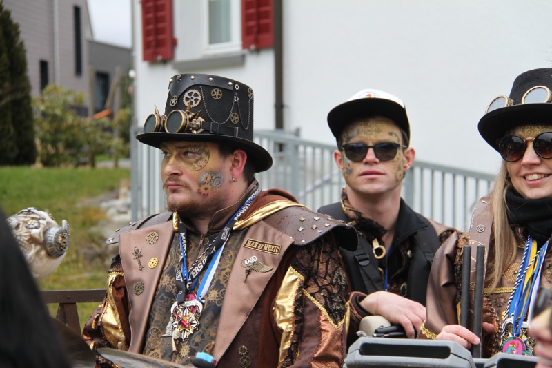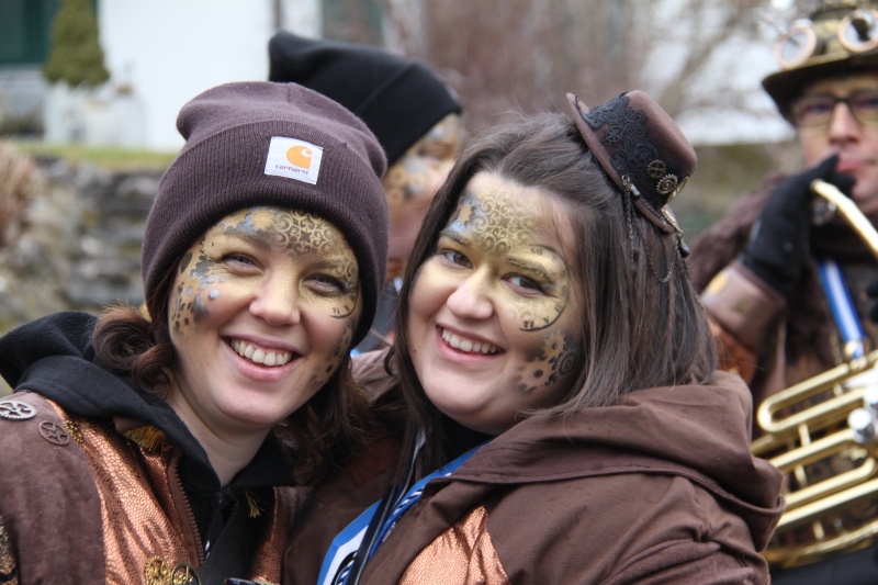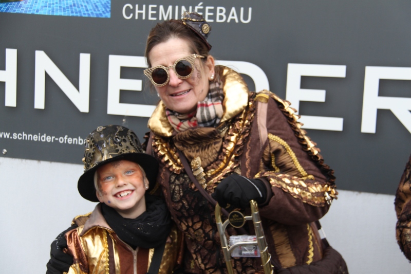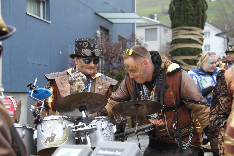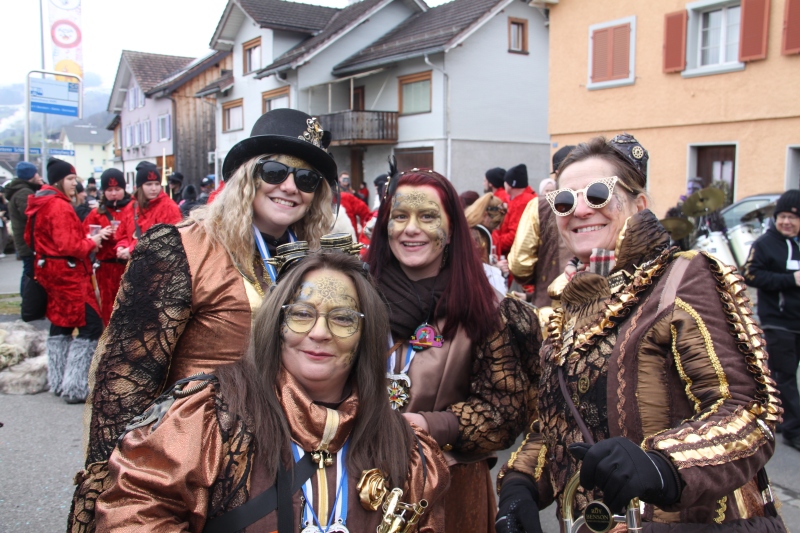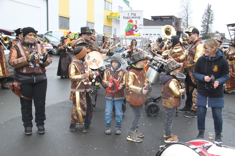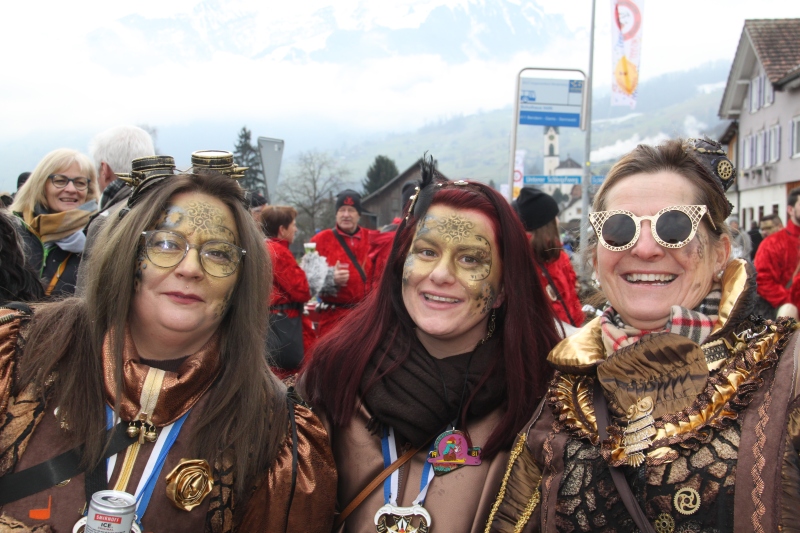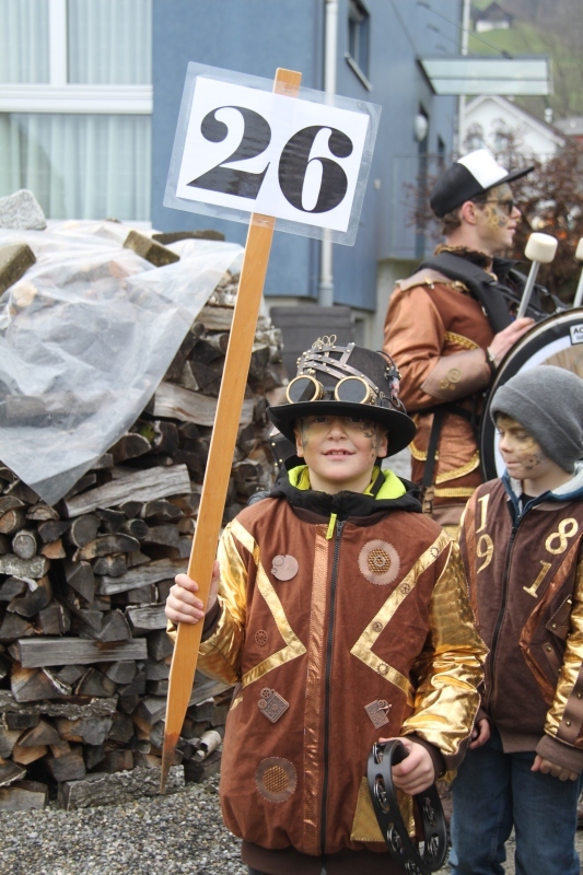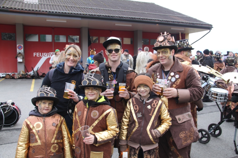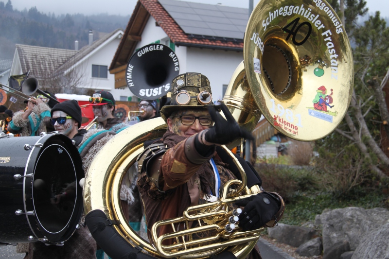 Umzug Gams Wieder einmal waren wir beim Gamser Umzug dabei, unzählig viele gut gelaunte und applaudierfreudige Zuschauer füllten den Strassenrand. Schnegg schnegg – Gugg gugg