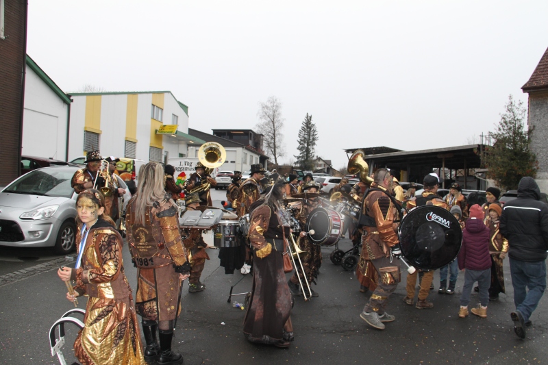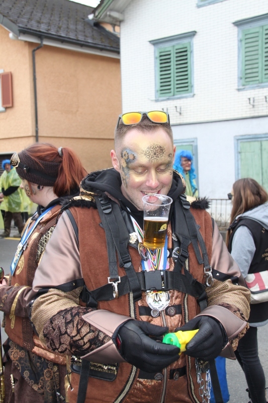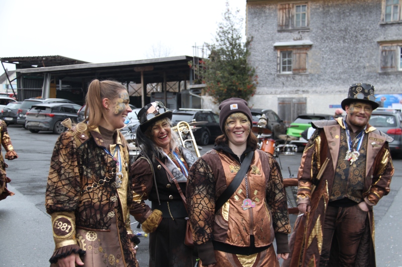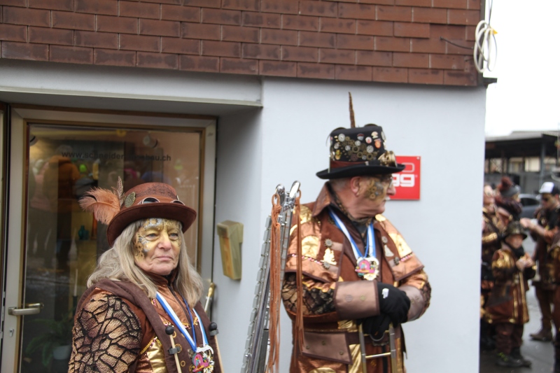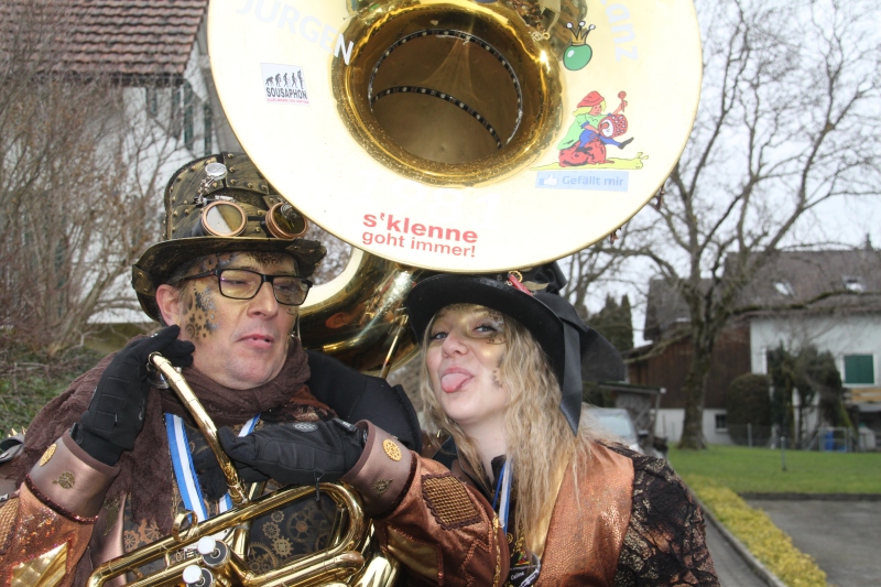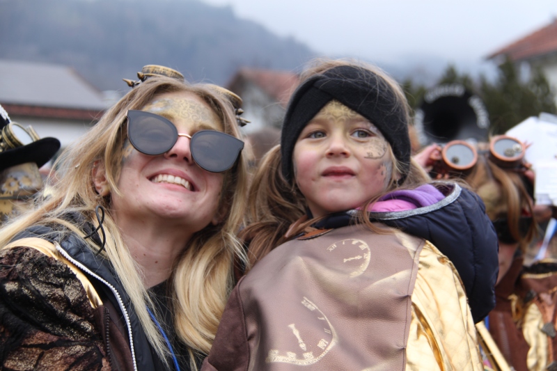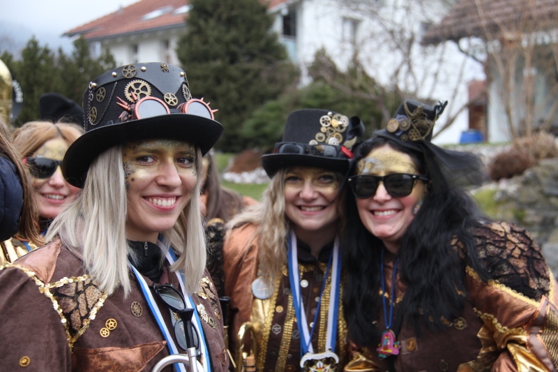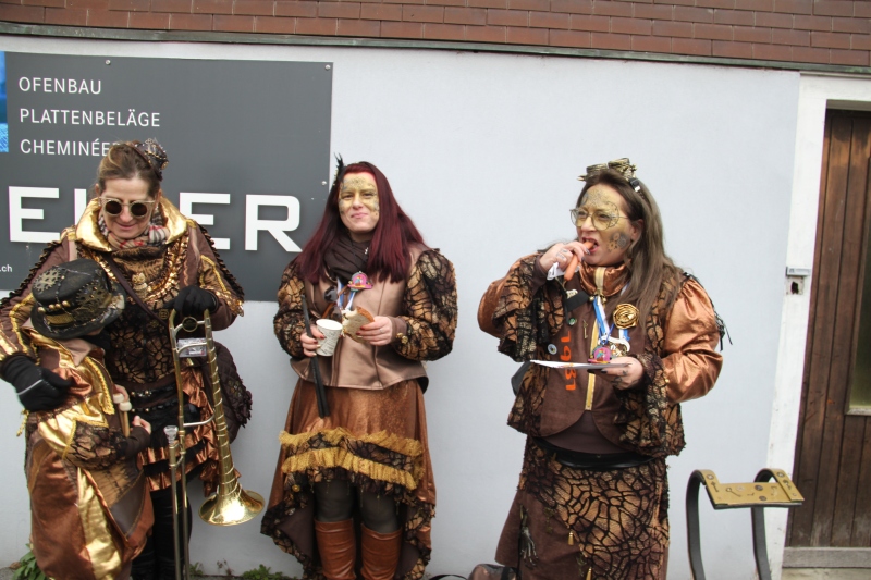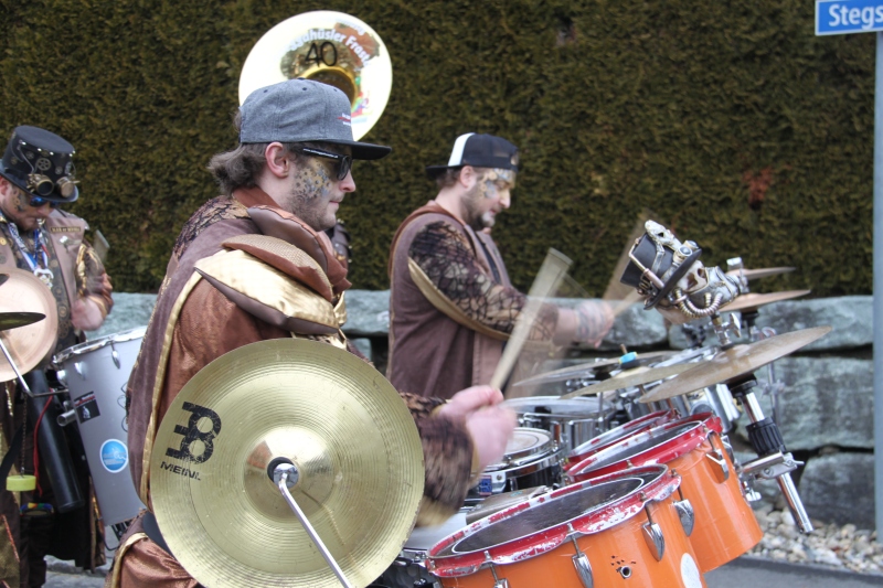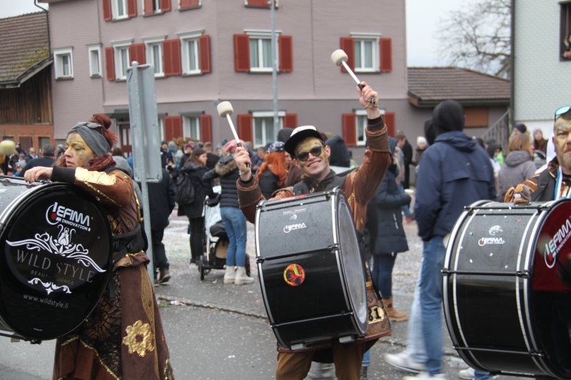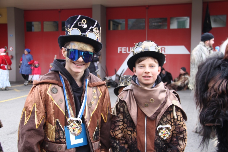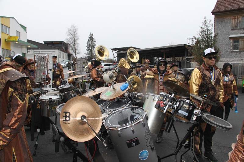 Umzug Gams Wieder einmal waren wir beim Gamser Umzug dabei, unzählig viele gut gelaunte und applaudierfreudige Zuschauer füllten den Strassenrand. Schnegg schnegg – Gugg gugg