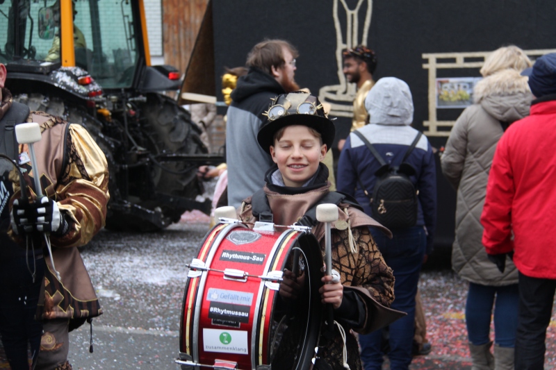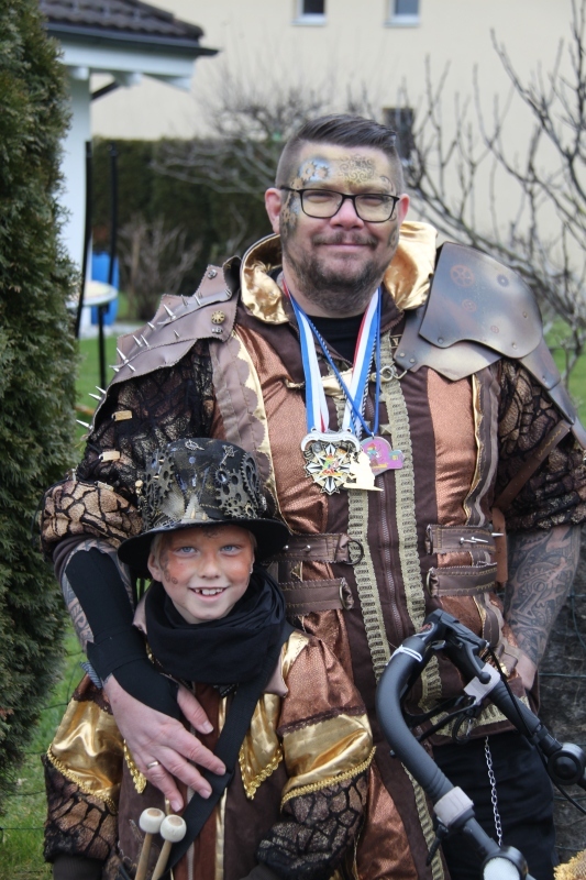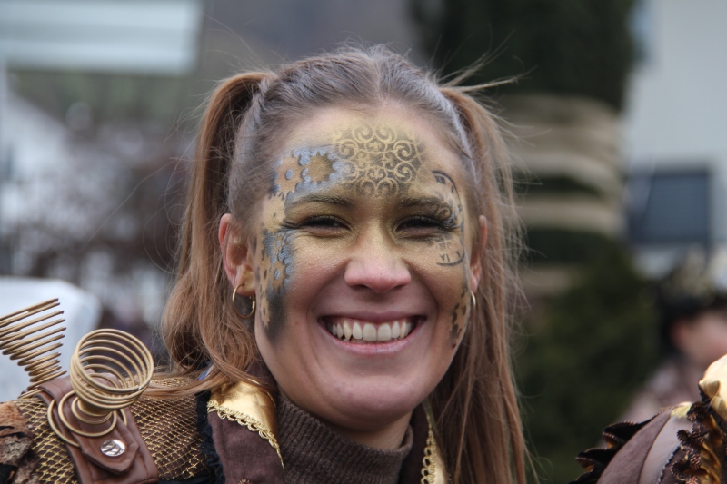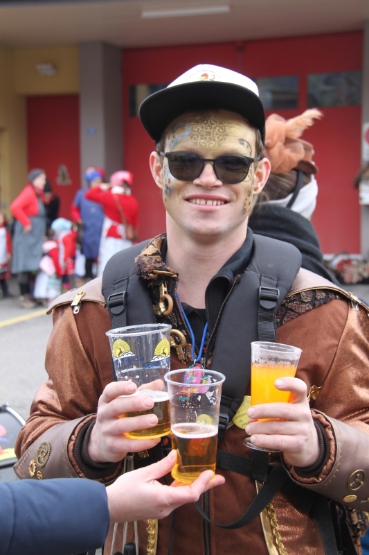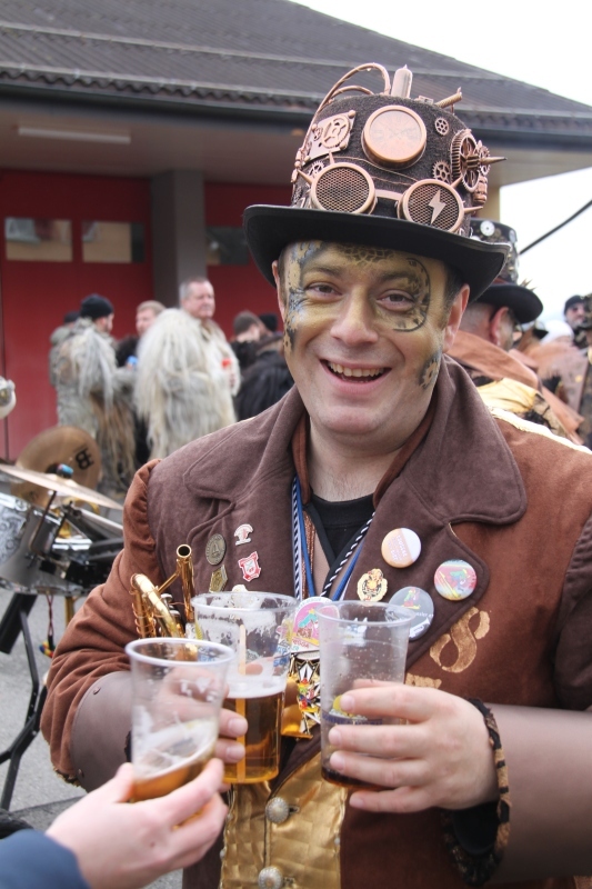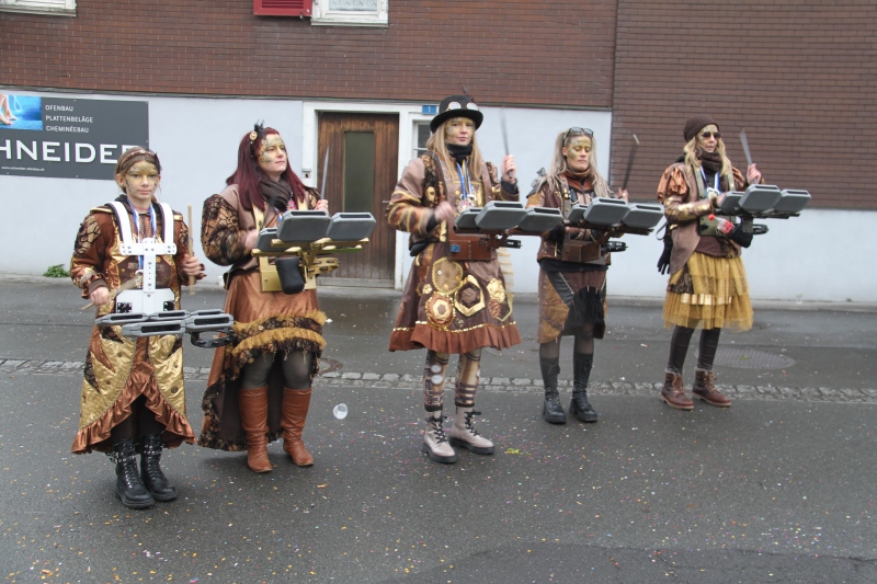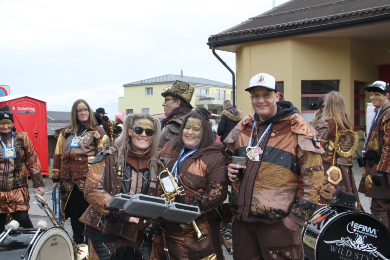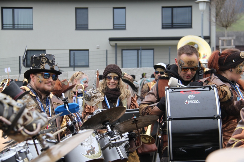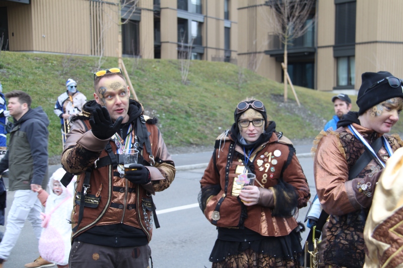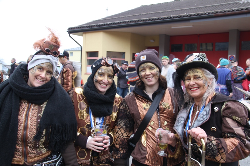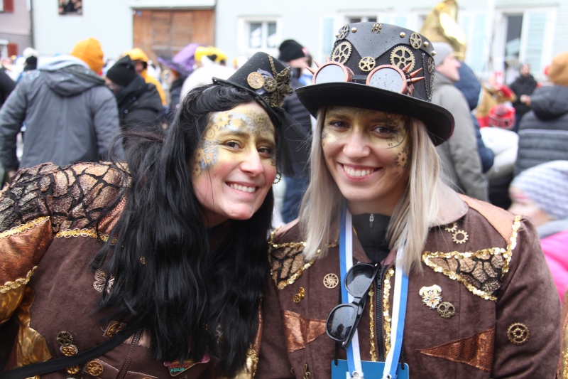 Umzug Gams Wieder einmal waren wir beim Gamser Umzug dabei, unzählig viele gut gelaunte und applaudierfreudige Zuschauer füllten den Strassenrand. Schnegg schnegg – Gugg gugg