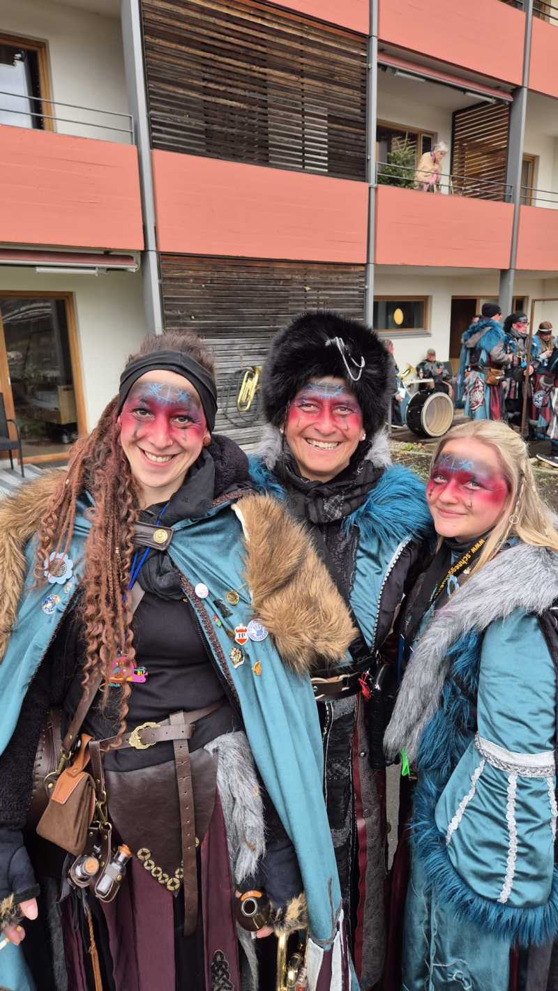 Danach ging es weiter zum Umzug nach Bludenz. Mit voller Leidenschaft zogen wir durch die Straßen, begleitet von Jubel, Applaus und bester Faschingslaune.